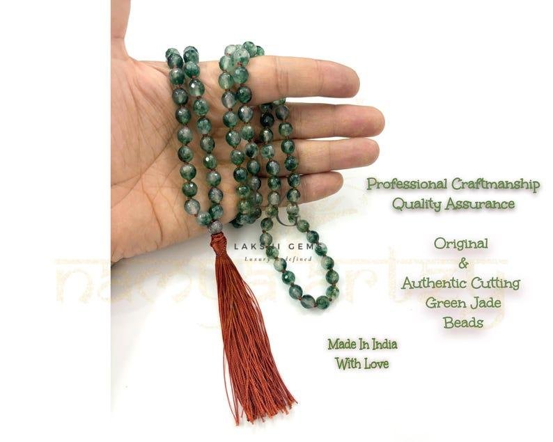 A mala typically includes 18-20 beads at a minimum. To account for any unforeseen issues, we include a few extra beads in the mala. This ensures that if any bead is found to be damaged or broken, it can be replaced while still meeting the required bead count.