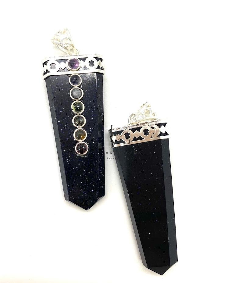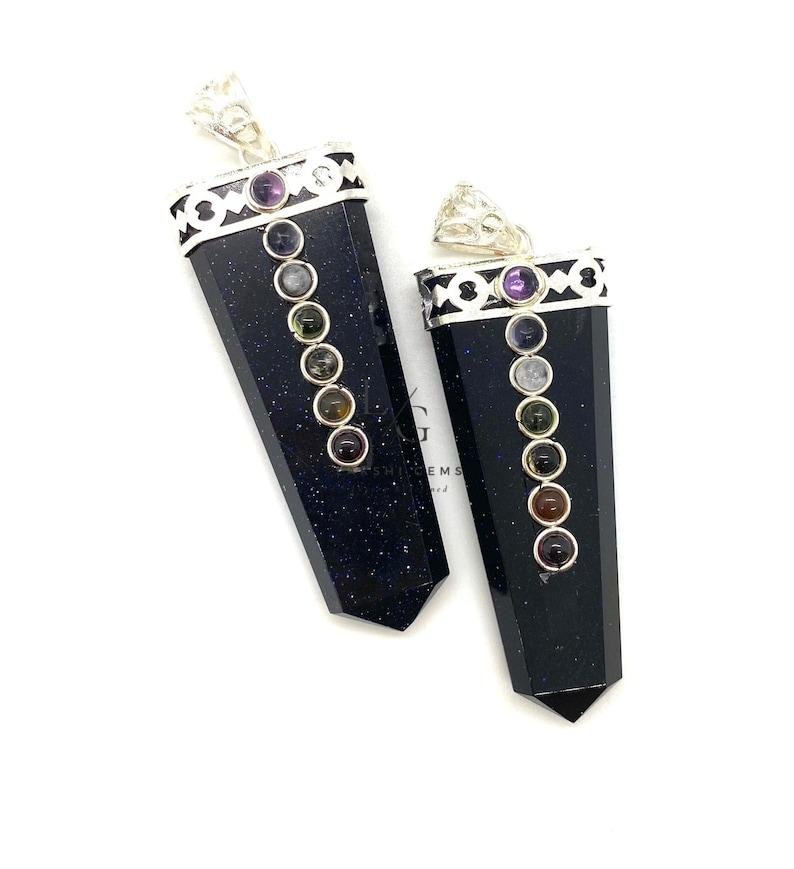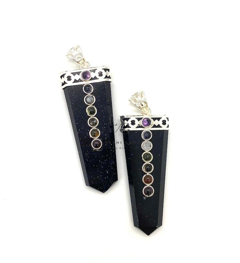 Be the first to review “Nuummite 7 Chakra Pencil Pendant”