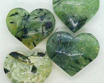 The Prehnite Healing Crystal Heart Stone promotes healing, enhances spiritual growth, fosters intuition, and brings peace and comfort to the wearer.