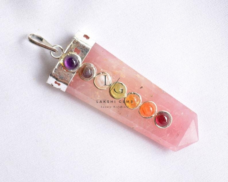 Rose Quartz 7 Chakra Pencil Pendant