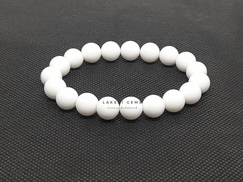 - Material: Natural white Hakik (agate) beads, polished to a smooth texture.